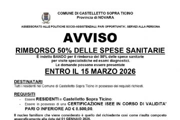 E' indetto bando per il rimborso del 50% delle spese sanitarie per visite specialistiche ed esami diagnostici. Le domande possono essere presentate entro il 15 MARZO 2026