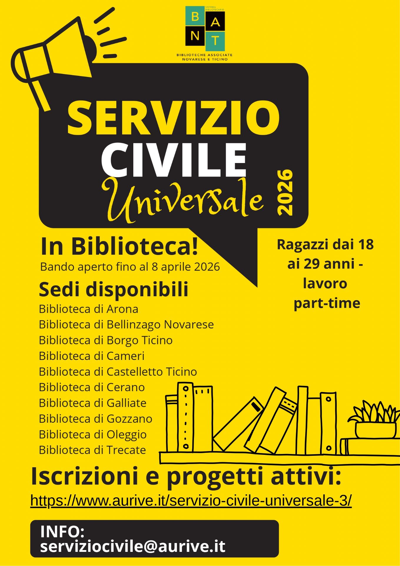 E' stato pubblicato il bando BIBLIOTECHE DI PROSSIMITÀ per il servizio civile 2026.