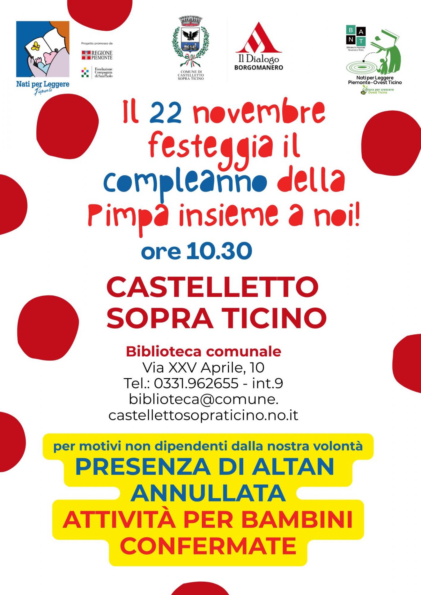 Per festeggiare questo importante anniversario, Nati per Leggere Ovest Ticino ha organizzato un evento congiunto che coinvolgerà tutte le Biblioteche del Coordinamento nell’ambito della Settimana Nazionale Nati per Leggere (15–23 novembre 2025).