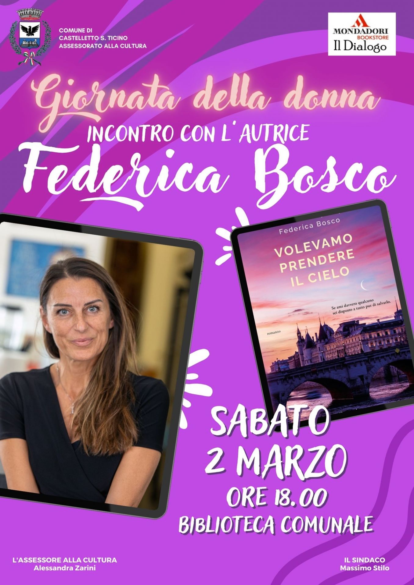 In occasione della giornata della donna, l'Assessorato alla Cultura del Comune di Castelletto Sopra Ticino, in collaborazione con la libreria Mondadori - Il Dialogo di Borgomanero, organizza una mini rassegna letteraria tutta declinata in rosa, ospitando due autrici molto note ed apprezzate dal pubblico femminile.