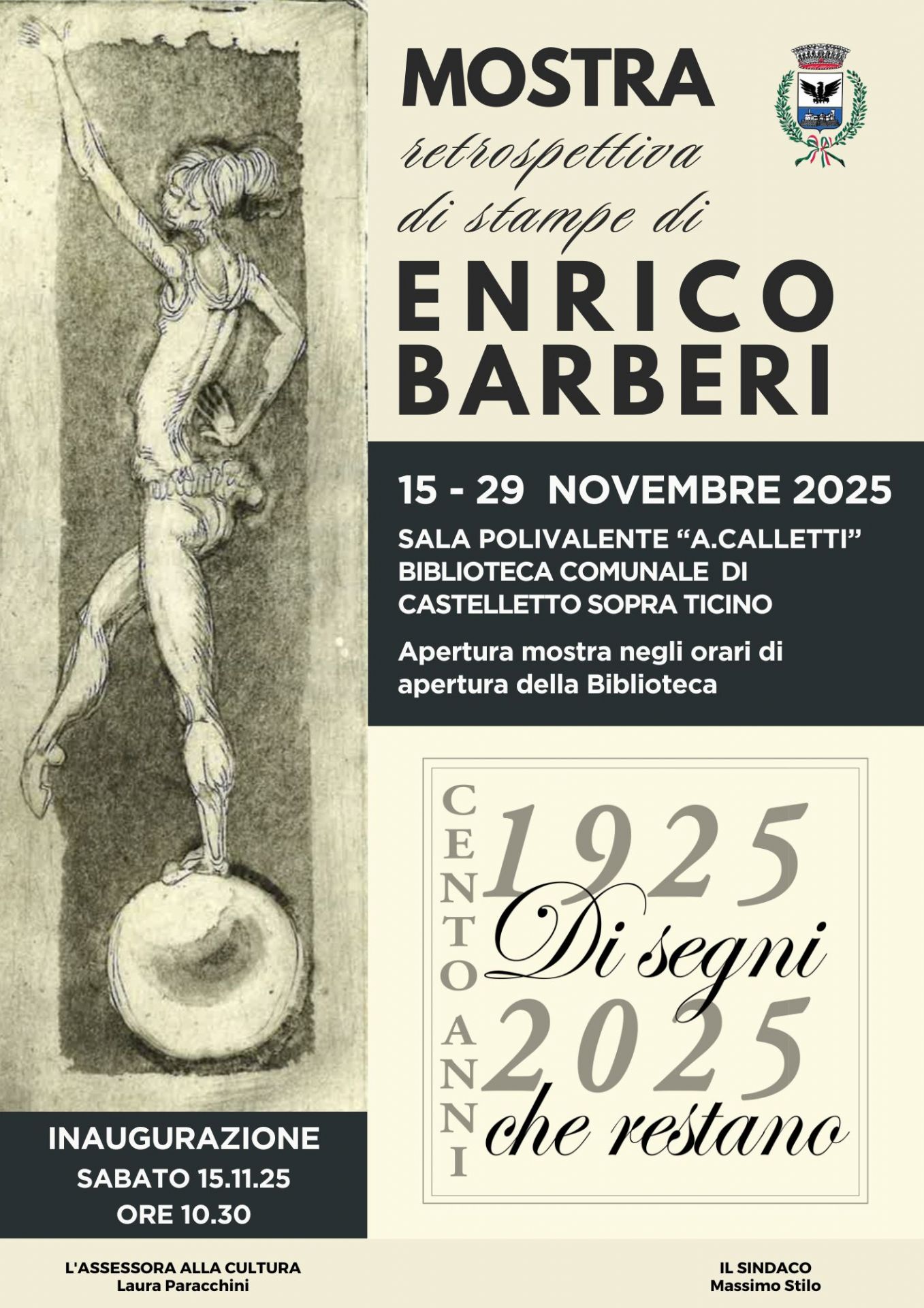 Nel centenario della nascita di Enrico Barberi, la famiglia dell’artista ne celebra la memoria con una mostra retrospettiva che pone particolare attenzione alla sua produzione litografica. Barberi, scultore, incisore e ceramista autodidatta, nacque a Castelletto Sopra Ticino cento anni fa, e qui ha sempre vissuto e lavorato nella storica “casa rossa” di Via Oldrina, dove si è spento nel 2012.