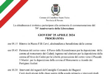 La cittadinanza è invitata a partecipare alla cerimonia di commemorazione del 79° Anniversario della Liberazione, che si terrà con il seguente programma: