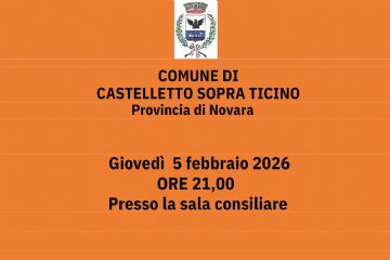 Si comunica che per il giorno 09 febbraio 2026 alle ore 18.30 presso la Sala Consiliare del Comune di Castelletto Sopra Ticino, è convocato il...