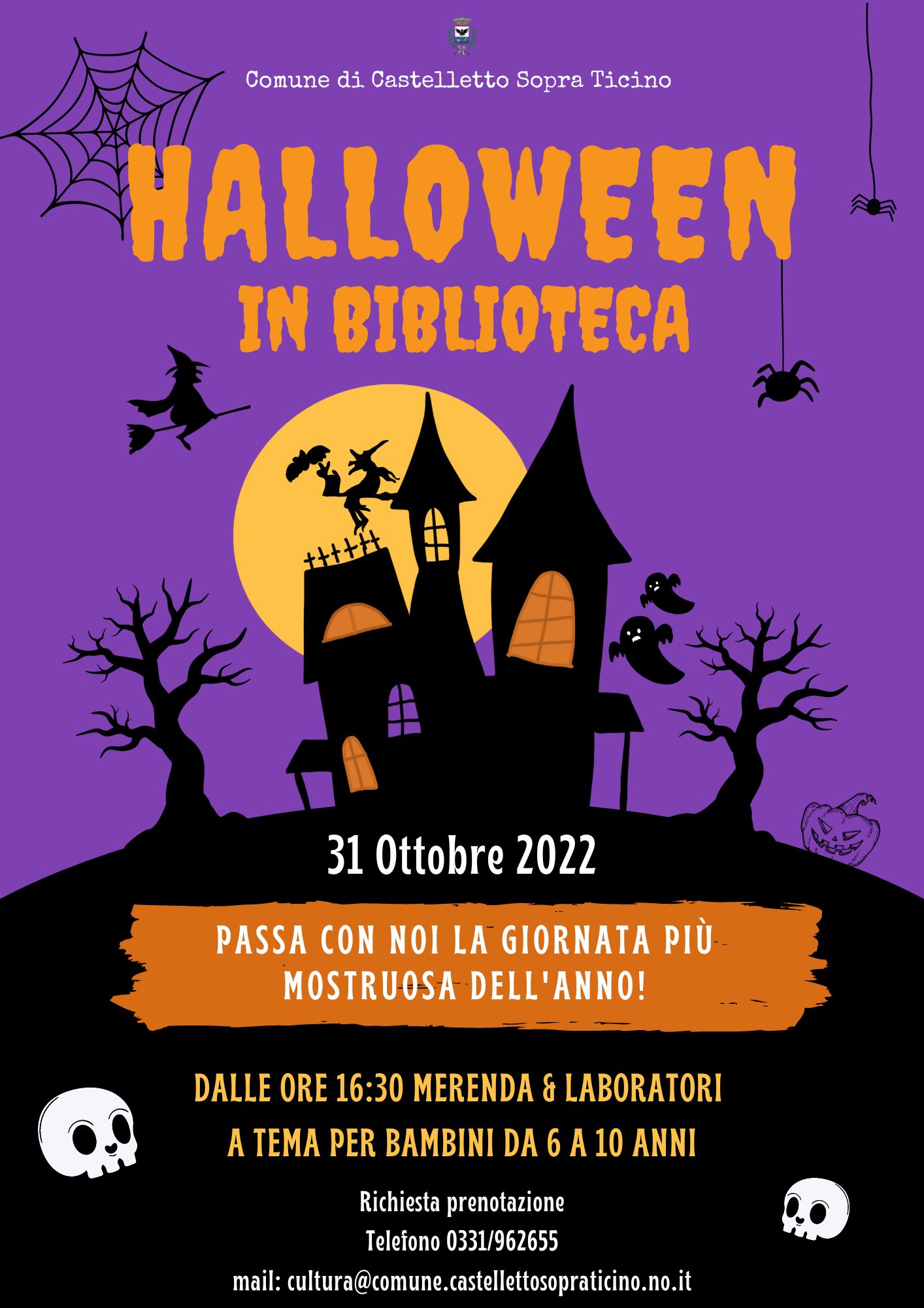 I posti sono limitati, si richiede la prenotazione via mail all'indirizzo: cultura@comune.castellettosopraticino.no.it o al numero di telefono 0331 - 962655 (chiedere di Ilaria o Giulia)