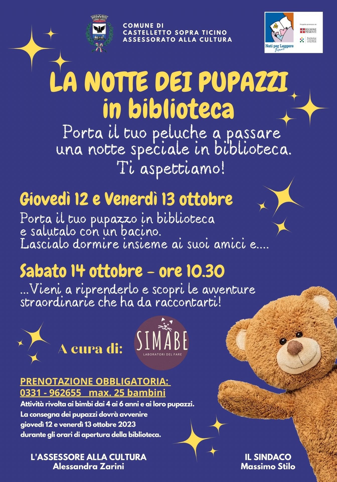 i bambini potranno ritirare i loro pupazzi ed ascoltare le storie della loro notte in biblioteca.