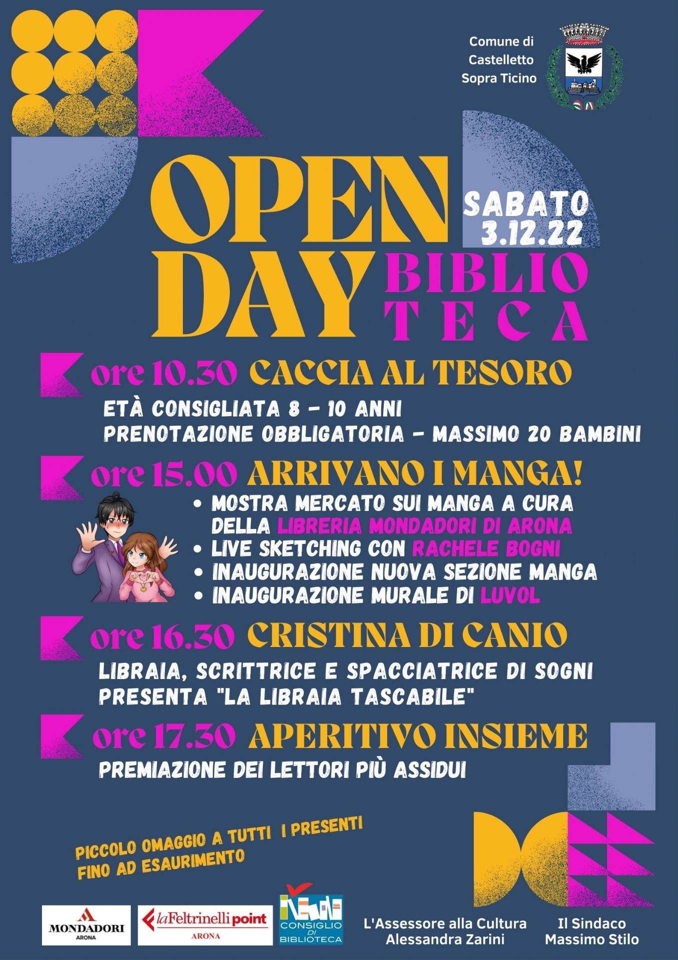Grazie alla collaborazione con la libreria Mondadori di Arona, presso la sala polivalente della Biblioteca verrà allestita una mostra mercato di manga.